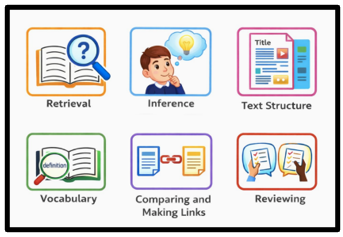 Reviewing and performing means reflecting on a text’s content and then expressing it aloud or through actions, which helps pupils engage with and remember what they have read.
